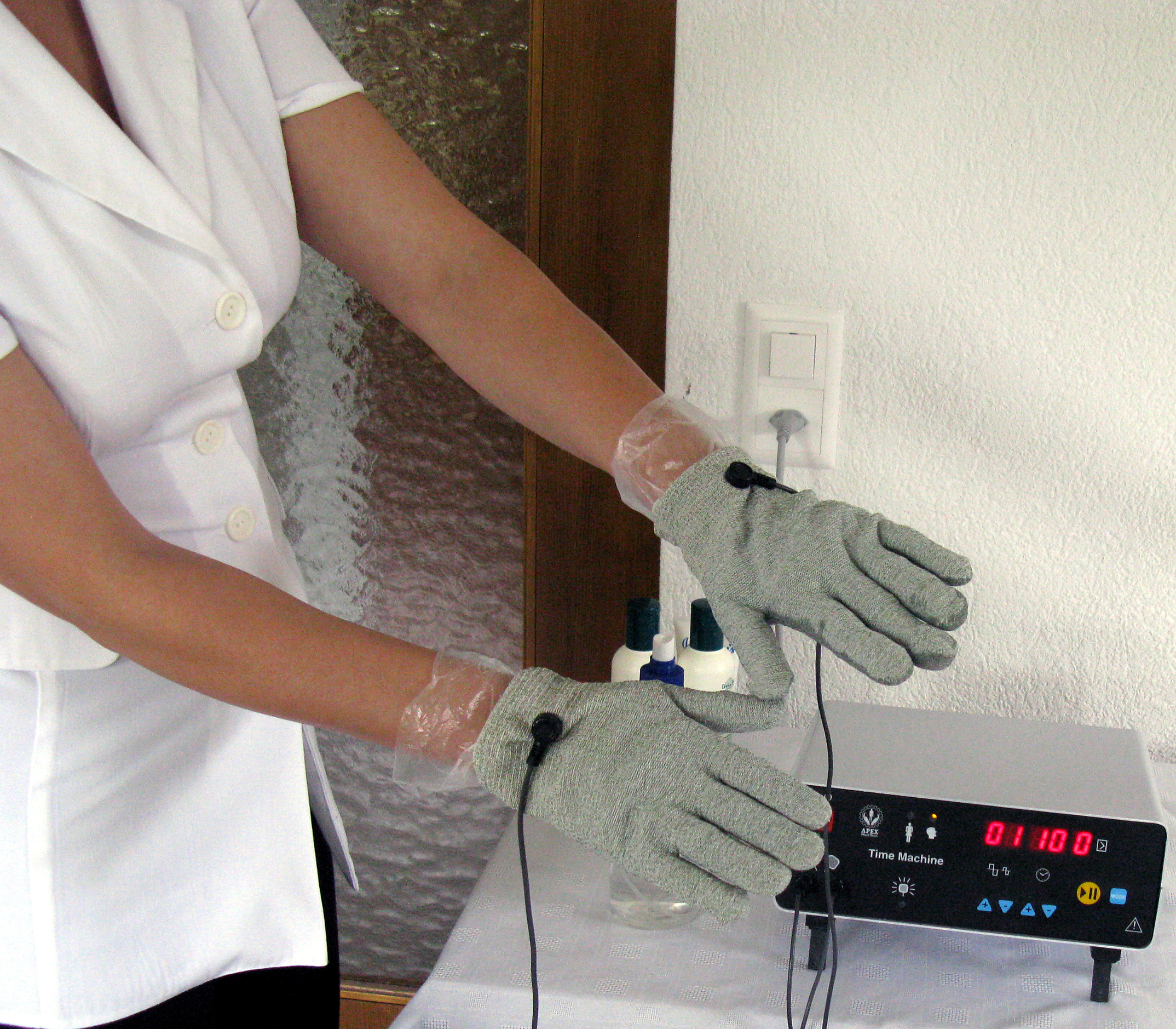 # Long lasting gloves, no need of using sticky, rigid electrodes on face.