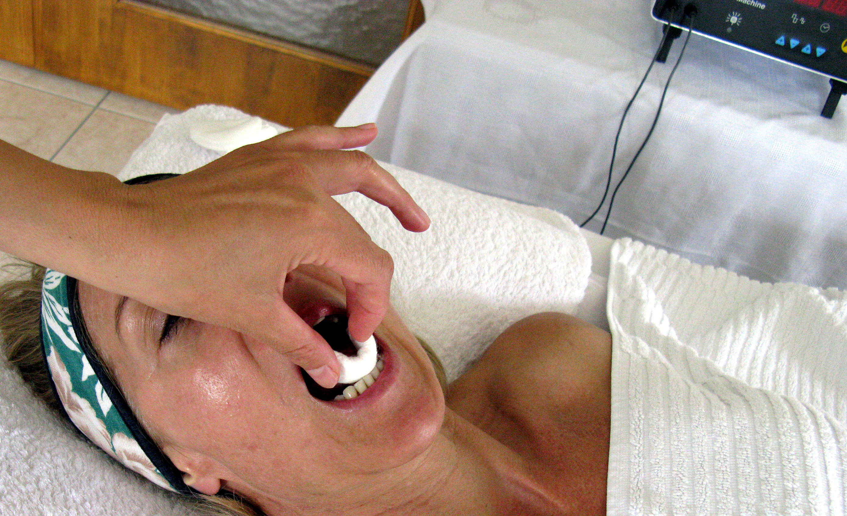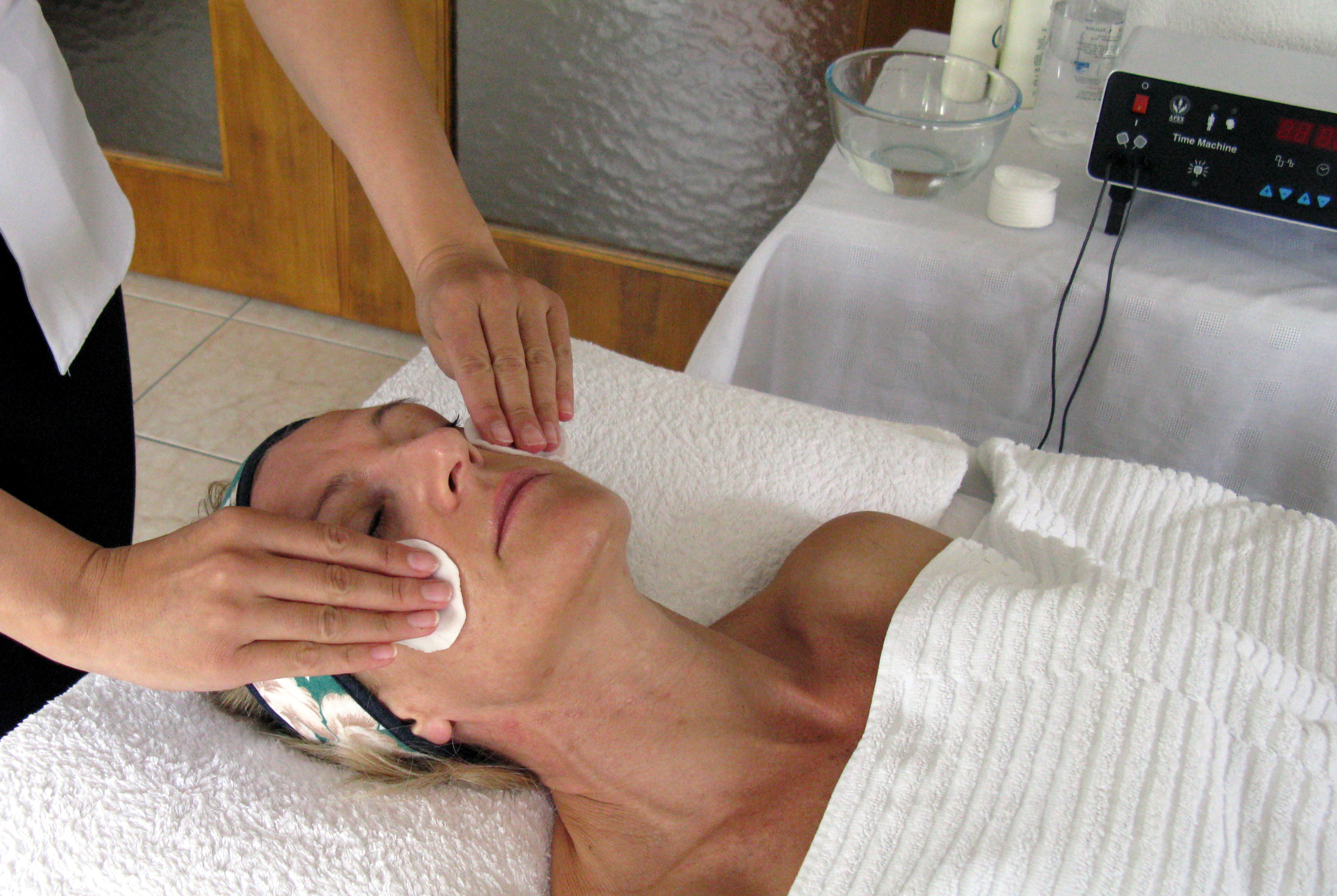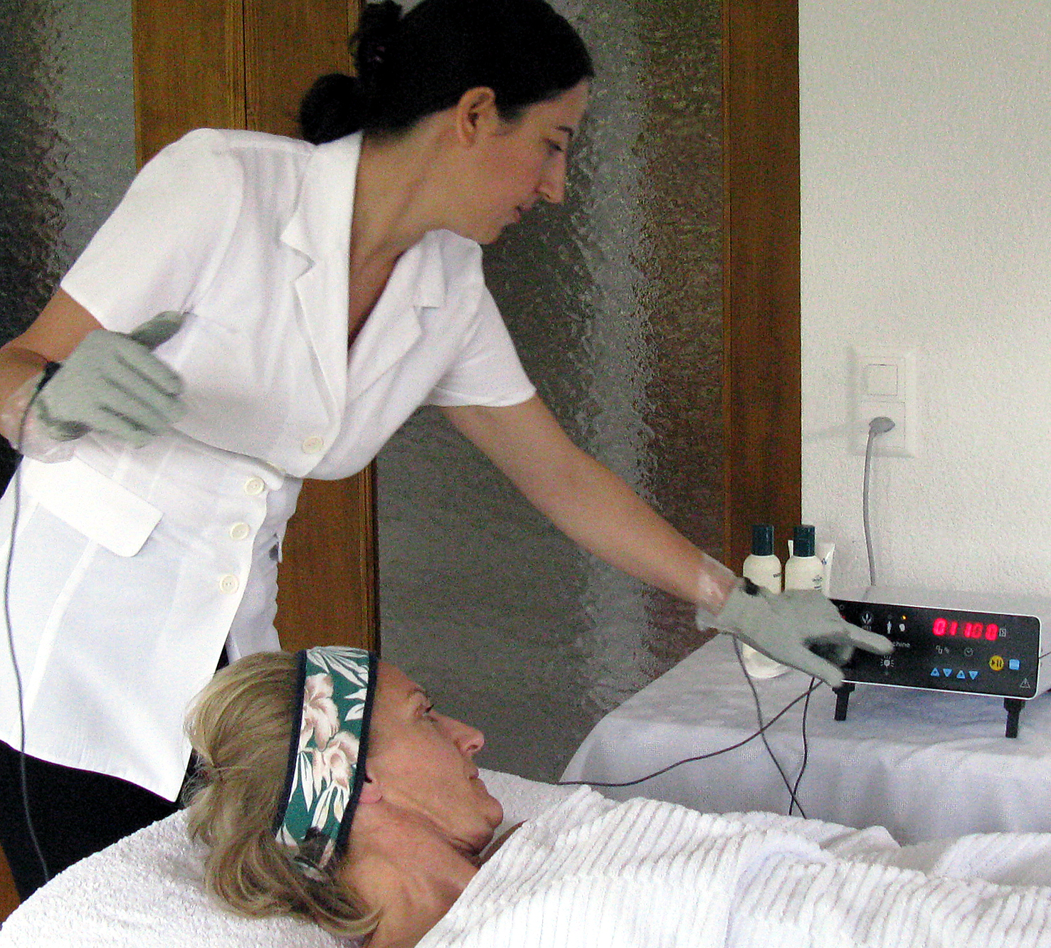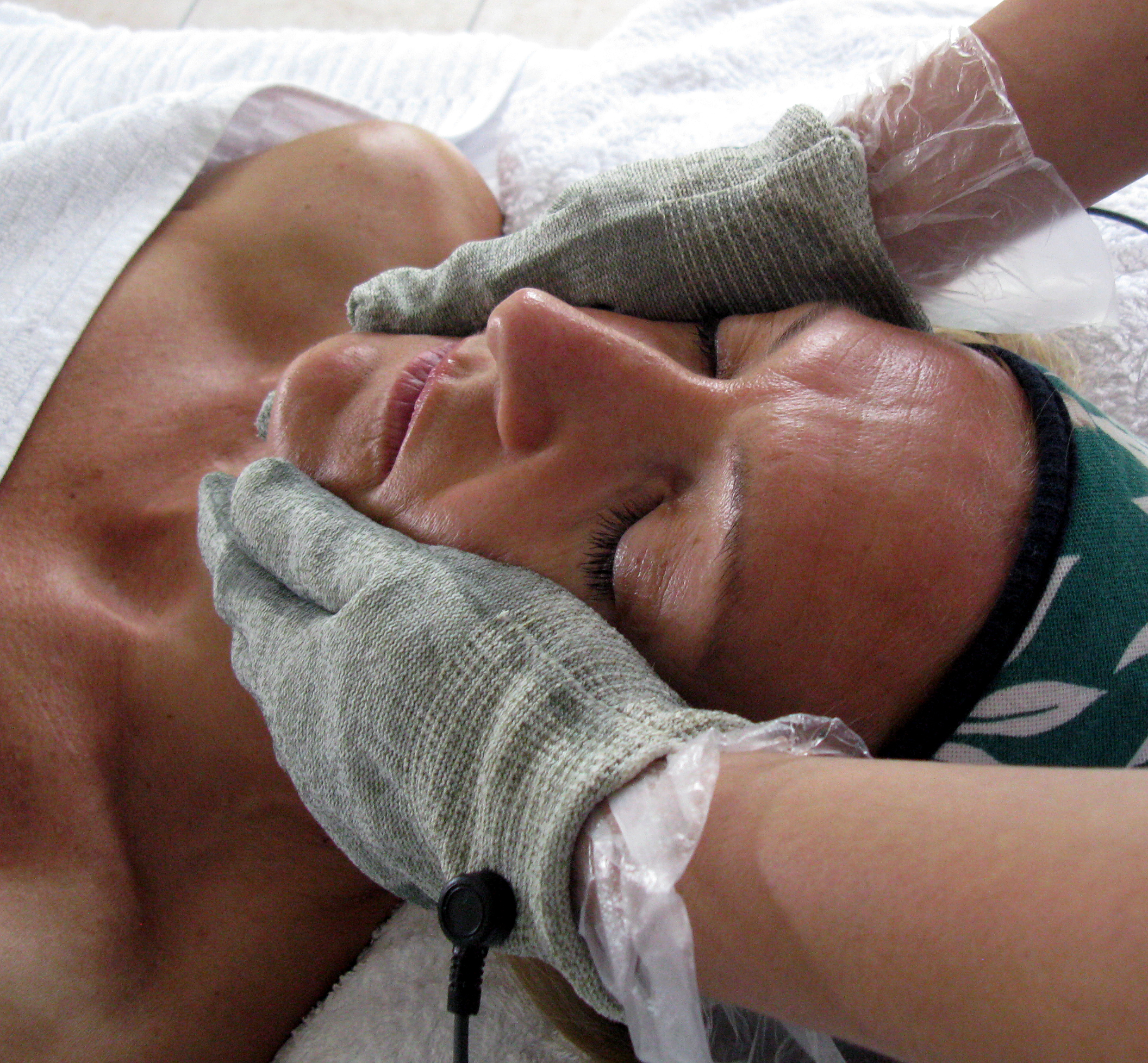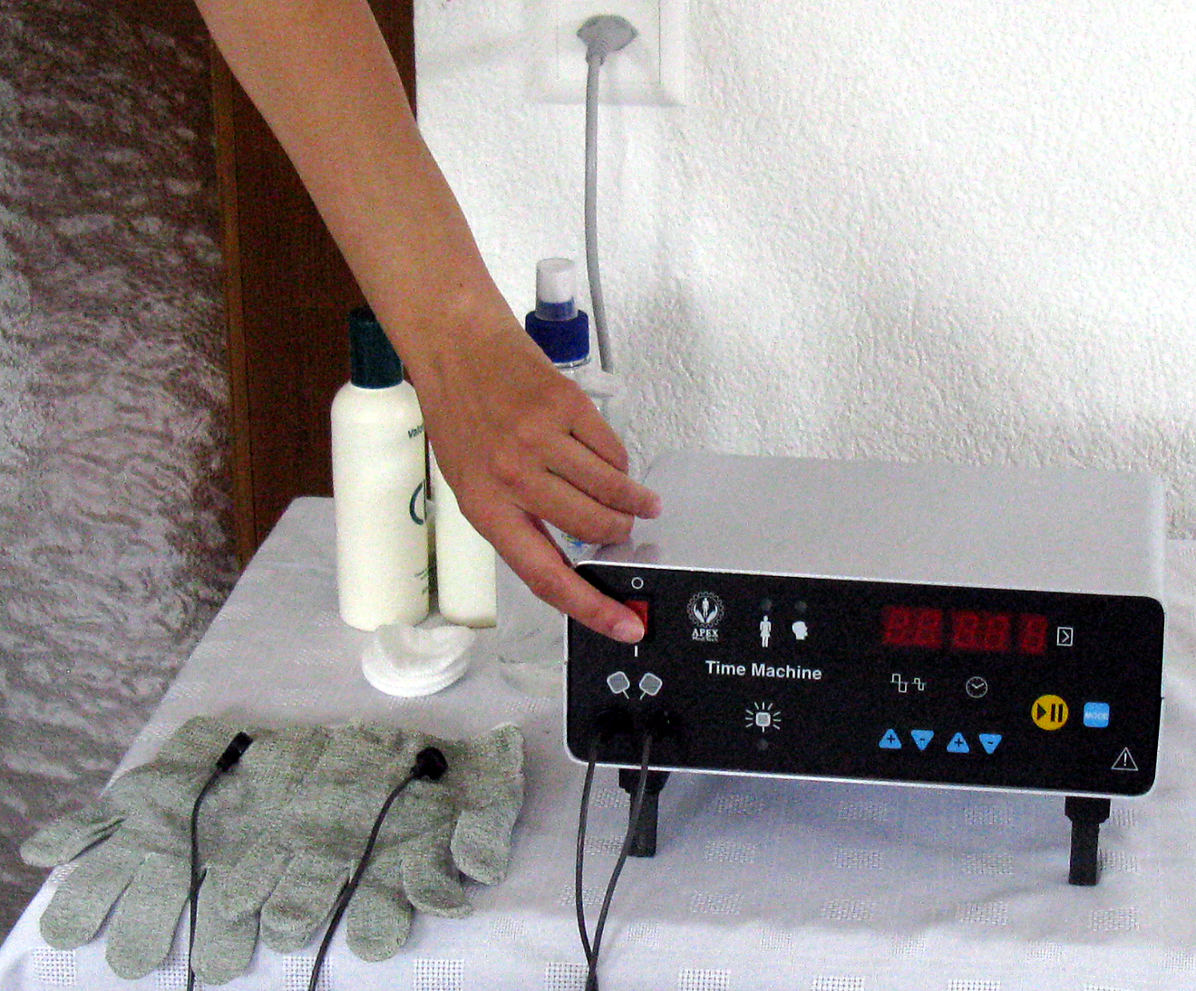 A controlled, weak electrical current stimulates nerves to tighten the skin and smooth away wrinkles. It can be used on any part of the body as often as required. About six sessions will show good results and then an occasional top up keeps you straight. There are no drugs or poisons. Absolutely no dangers. The effect lasts about two weeks. Use this in preparation for an event.
